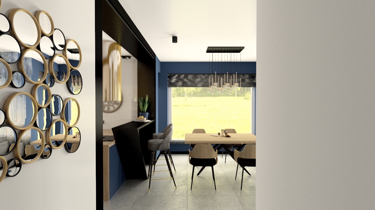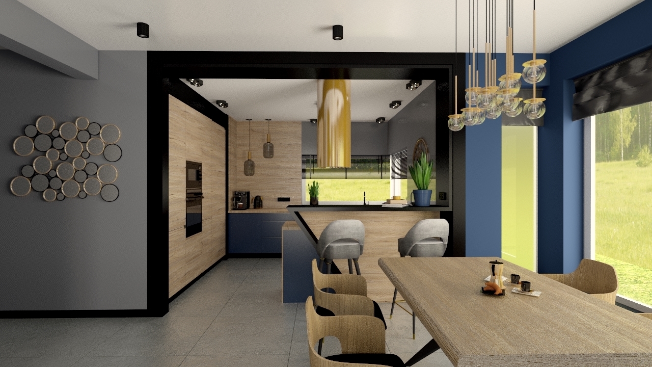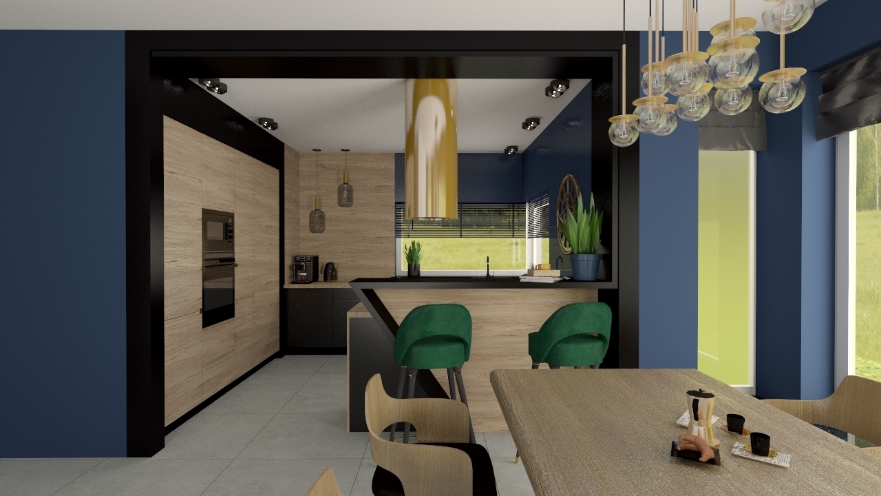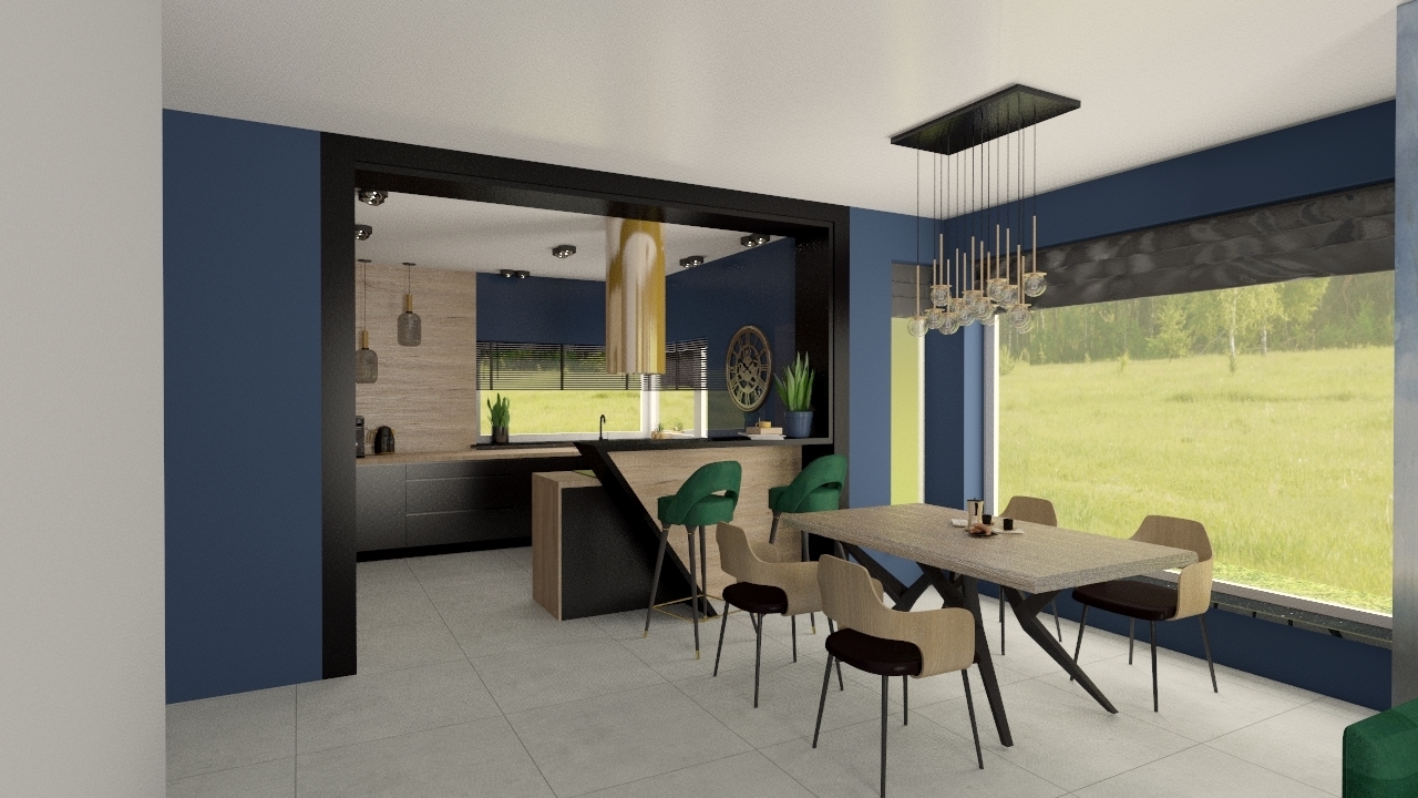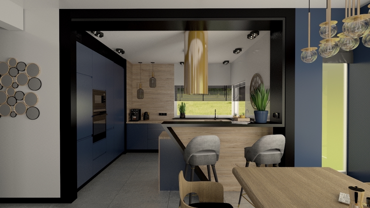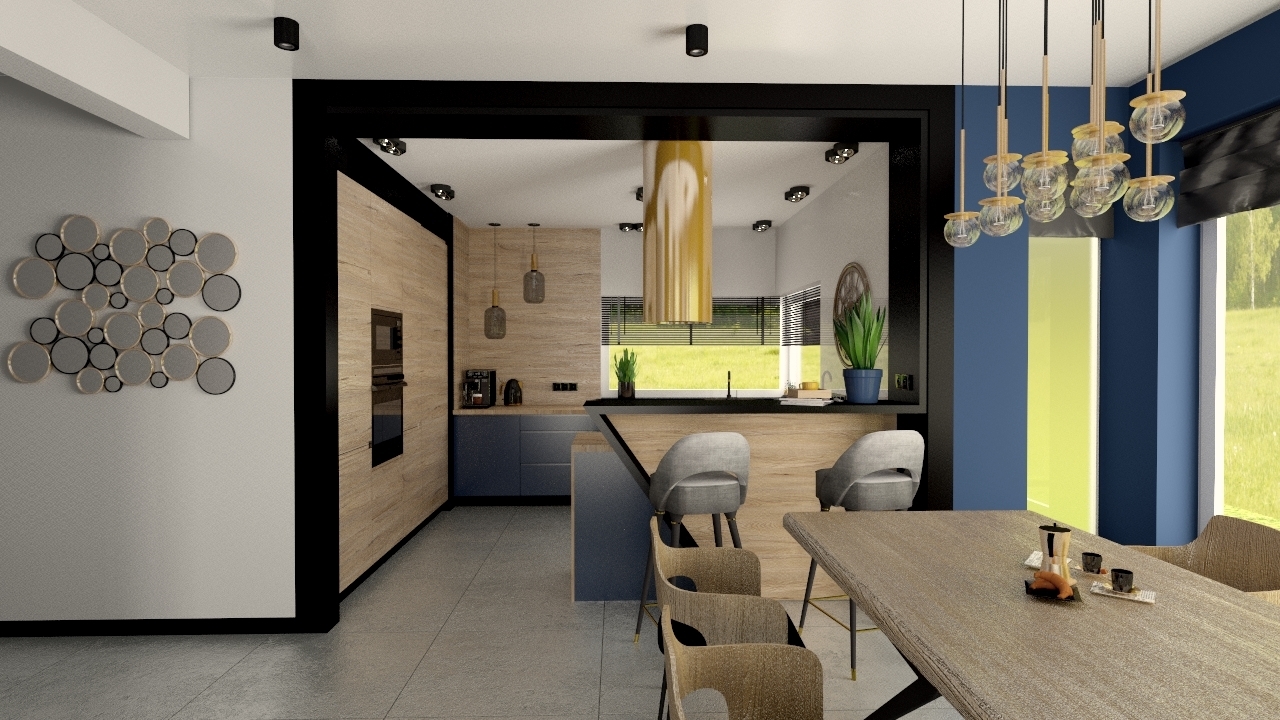 Projekt nowo wybudowanego domu, osadzony w aktualnie królujących trendach. Nowoczesna, bryła i odważna kolorystyka kuchni, połączona z ergonomicznym projektem robi wrażenie. Eleganckie łazienki, zaprojektowane w minimalistycznym, ale ciepłym klimacie wspaniale spełniają swoją funkcję i cieszą oko.