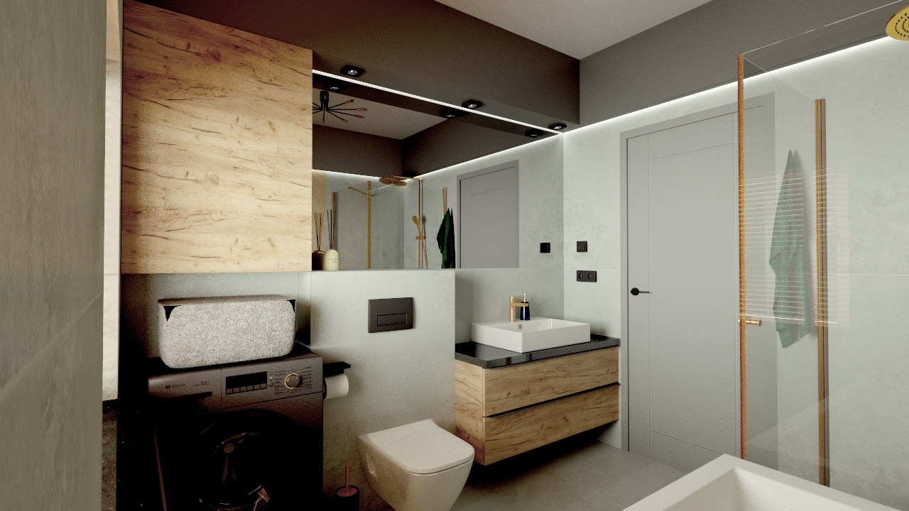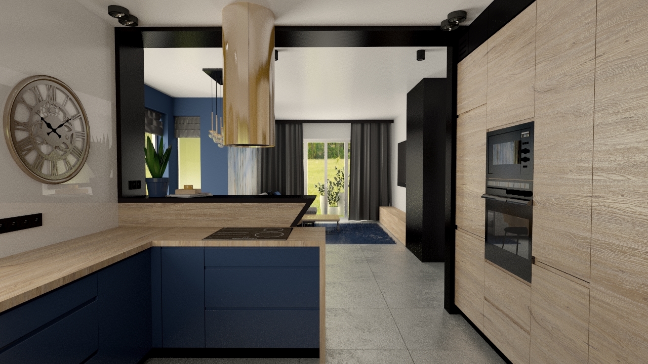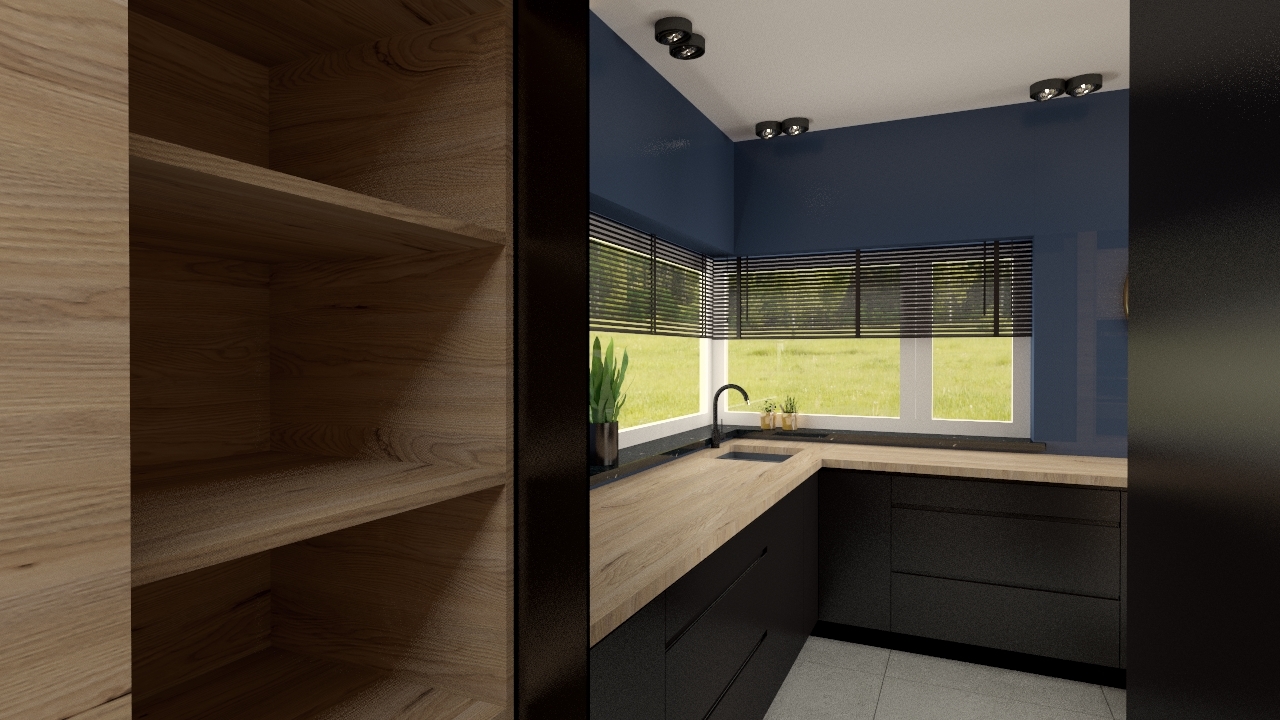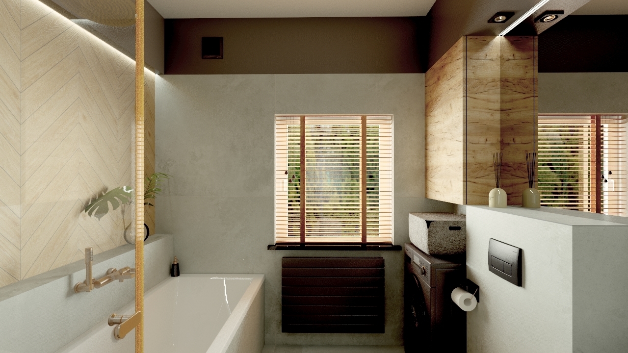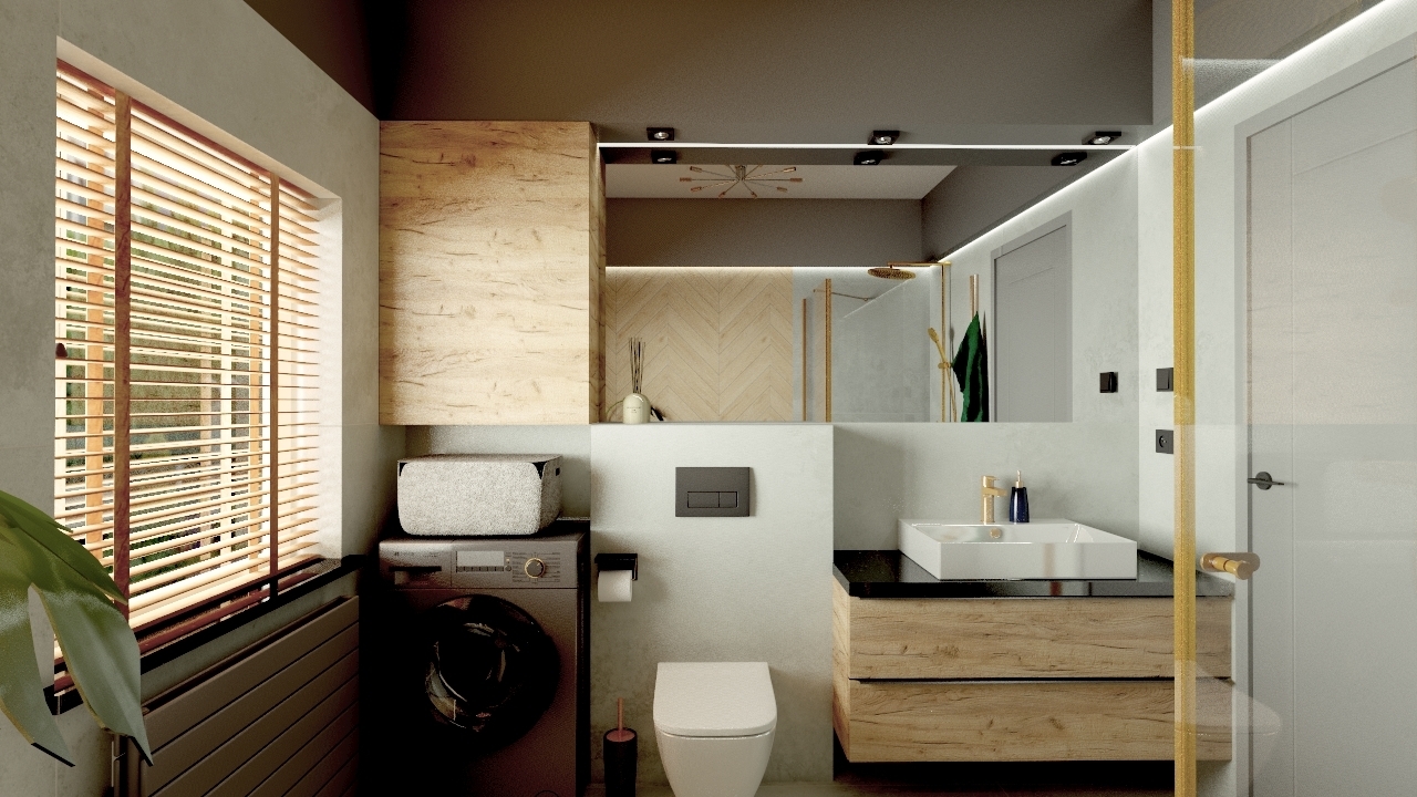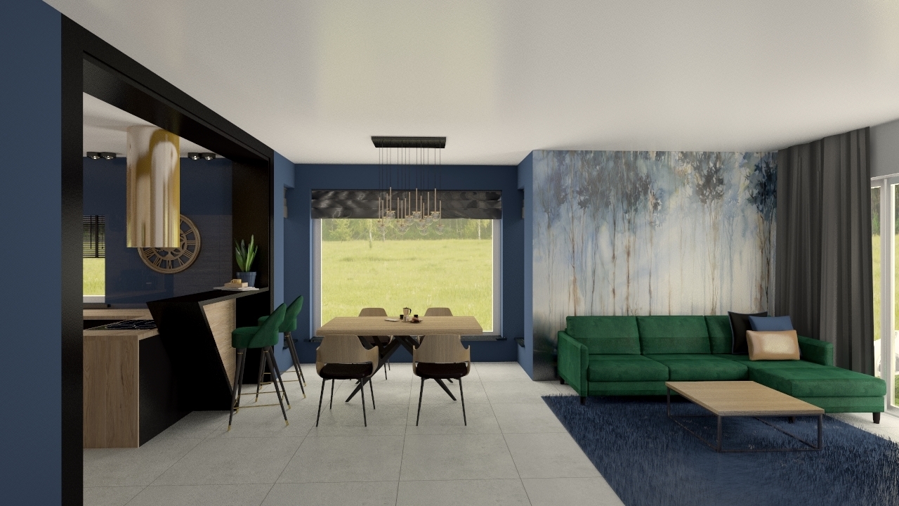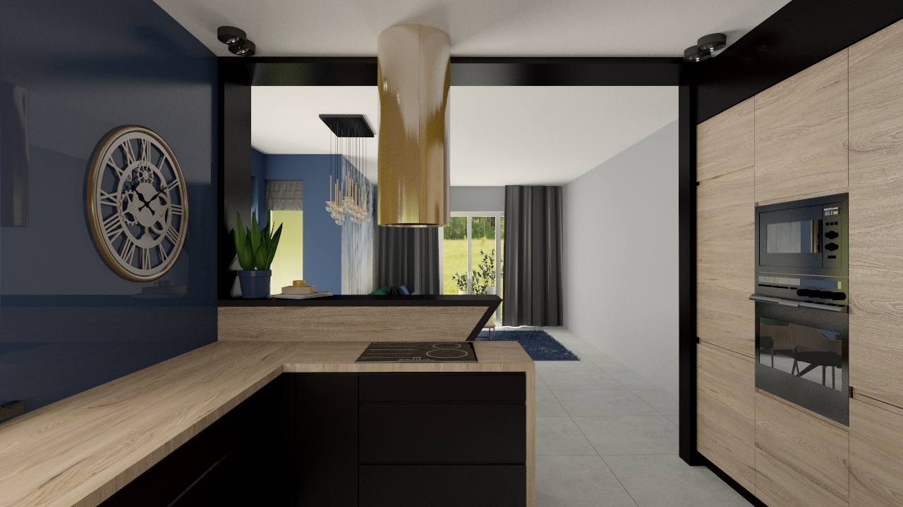 Projekt nowo wybudowanego domu, osadzony w aktualnie królujących trendach. Nowoczesna, bryła i odważna kolorystyka kuchni, połączona z ergonomicznym projektem robi wrażenie. Eleganckie łazienki, zaprojektowane w minimalistycznym, ale ciepłym klimacie wspaniale spełniają swoją funkcję i cieszą oko.