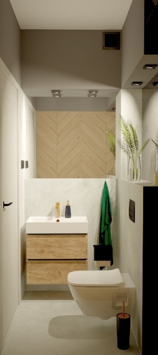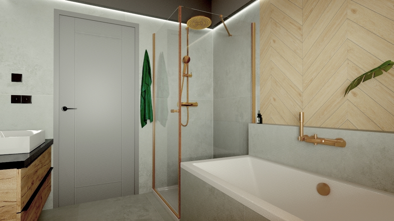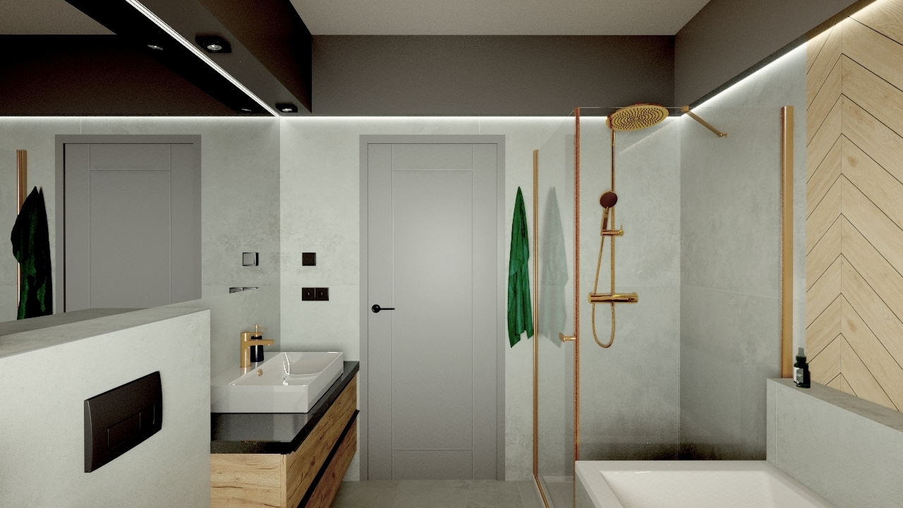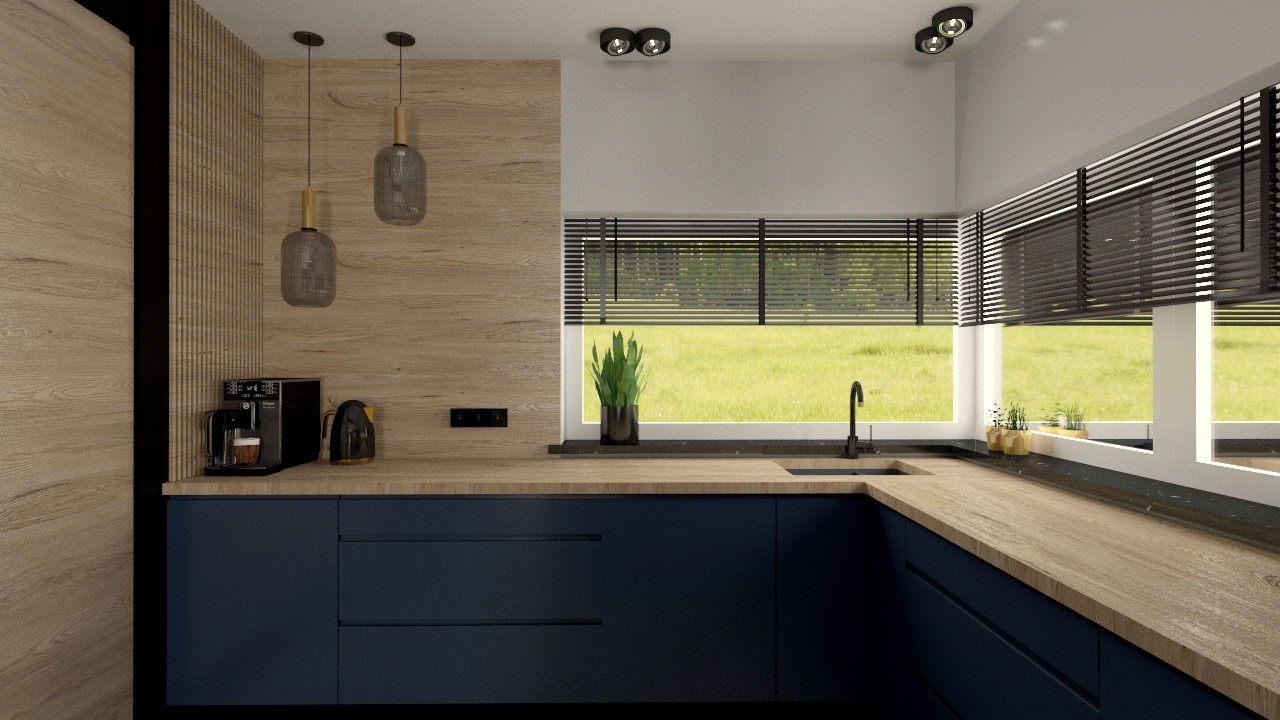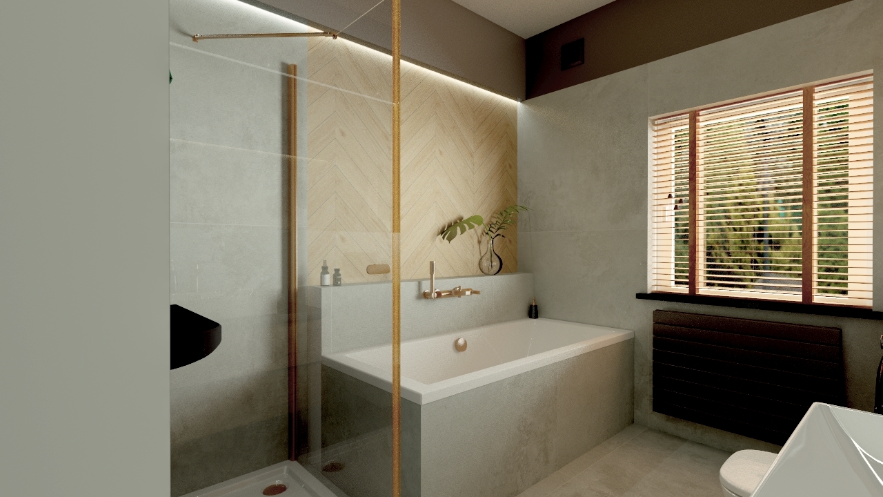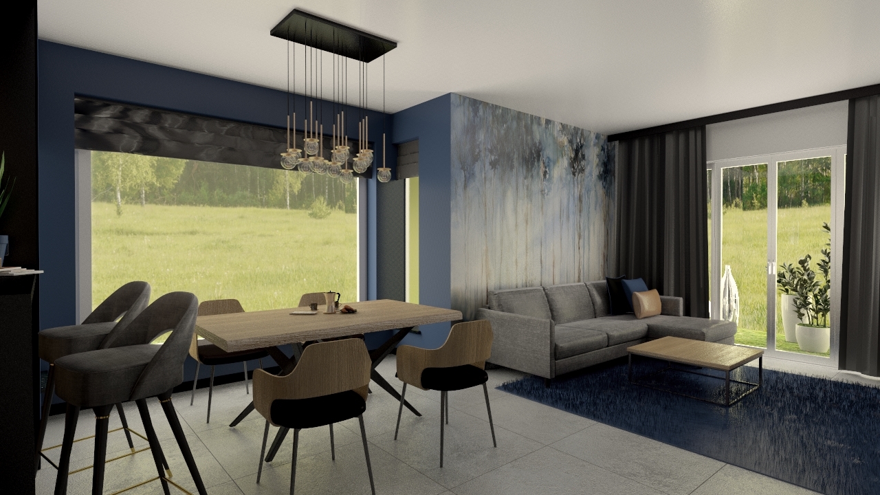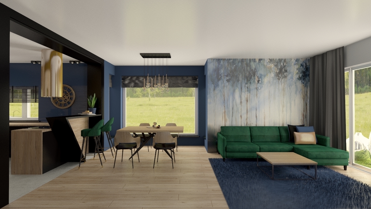 Projekt nowo wybudowanego domu, osadzony w aktualnie królujących trendach. Nowoczesna, bryła i odważna kolorystyka kuchni, połączona z ergonomicznym projektem robi wrażenie. Eleganckie łazienki, zaprojektowane w minimalistycznym, ale ciepłym klimacie wspaniale spełniają swoją funkcję i cieszą oko.