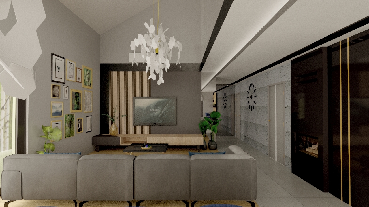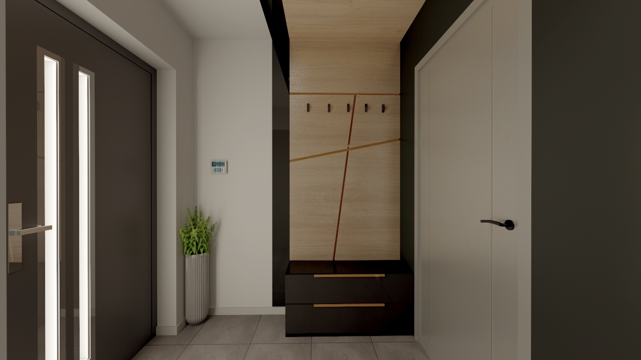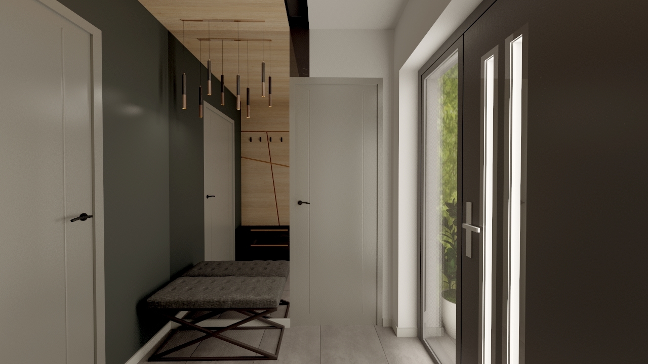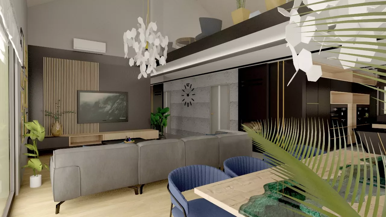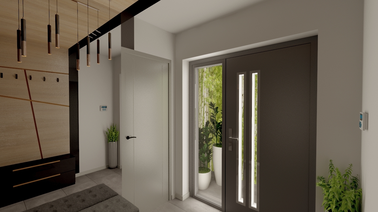 Wspaniały, nowoczesny dom z antresolą i baaaardzo wysokim salonem. Odważni i zdecydowani inwestorzy, postawili na ciemną kolorystykę mebli kuchennych o bardzo niebanalnych kształtach. Całość nie została nimi przytłoczona ponieważ mamy tutaj przepiękne, wielkie okna, które są ramami dla cudownego pejzażu, który się za nimi maluje. Praca nad tym projektem była wspaniałym, twórczym procesem.