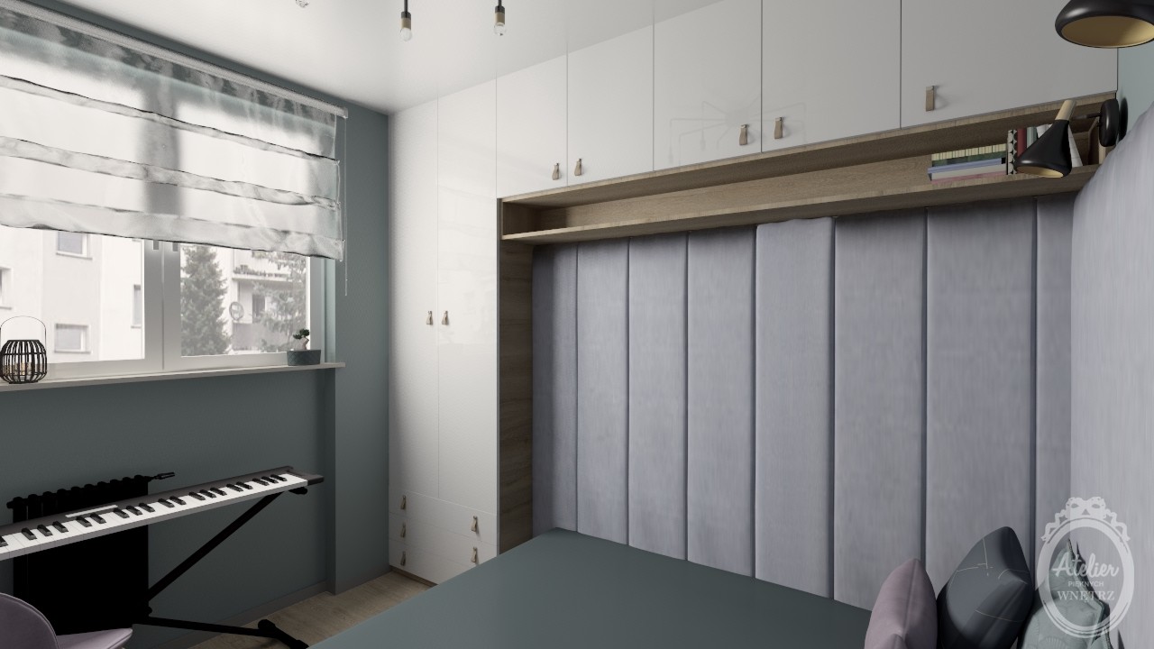 Kawalerka w bloku z tzw. „starego budownictwa”, w której ze starej kuchni została zrobiona mała sypialnia, a w salonie powstał aneks kuchenny. Czary mary i bez zmiany metrażu mieszkania z kawalerki zrobiliśmy mały apartament dwupokojowy 🙂 Da się? Da 🙂