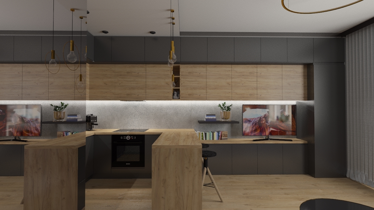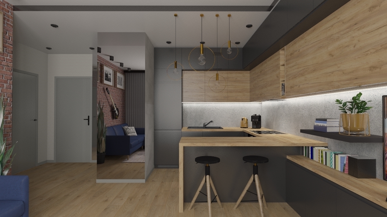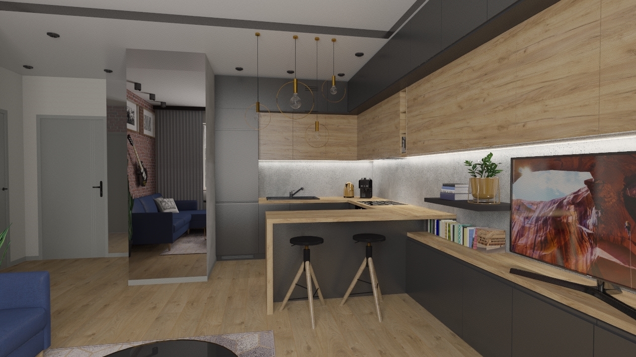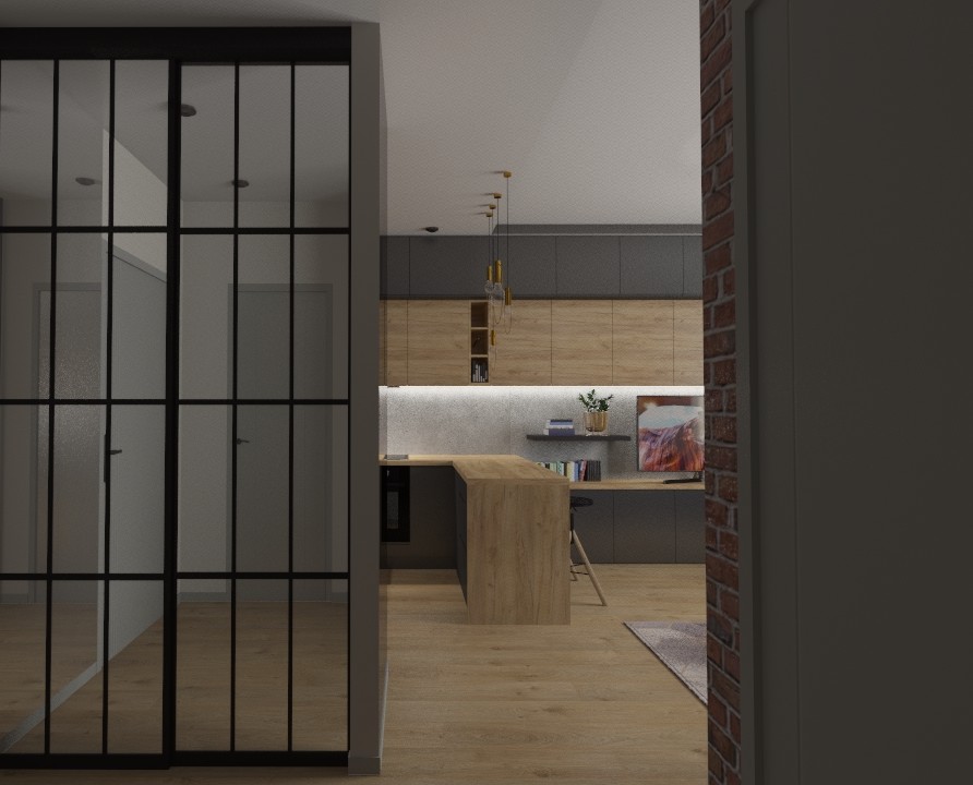 Młodzi i energiczni właściciele, postawili na zaproponowany przeze mnie styl loftowy, który wspaniale pasuje do ich mieszkania nadając mu niesamowity charakter.